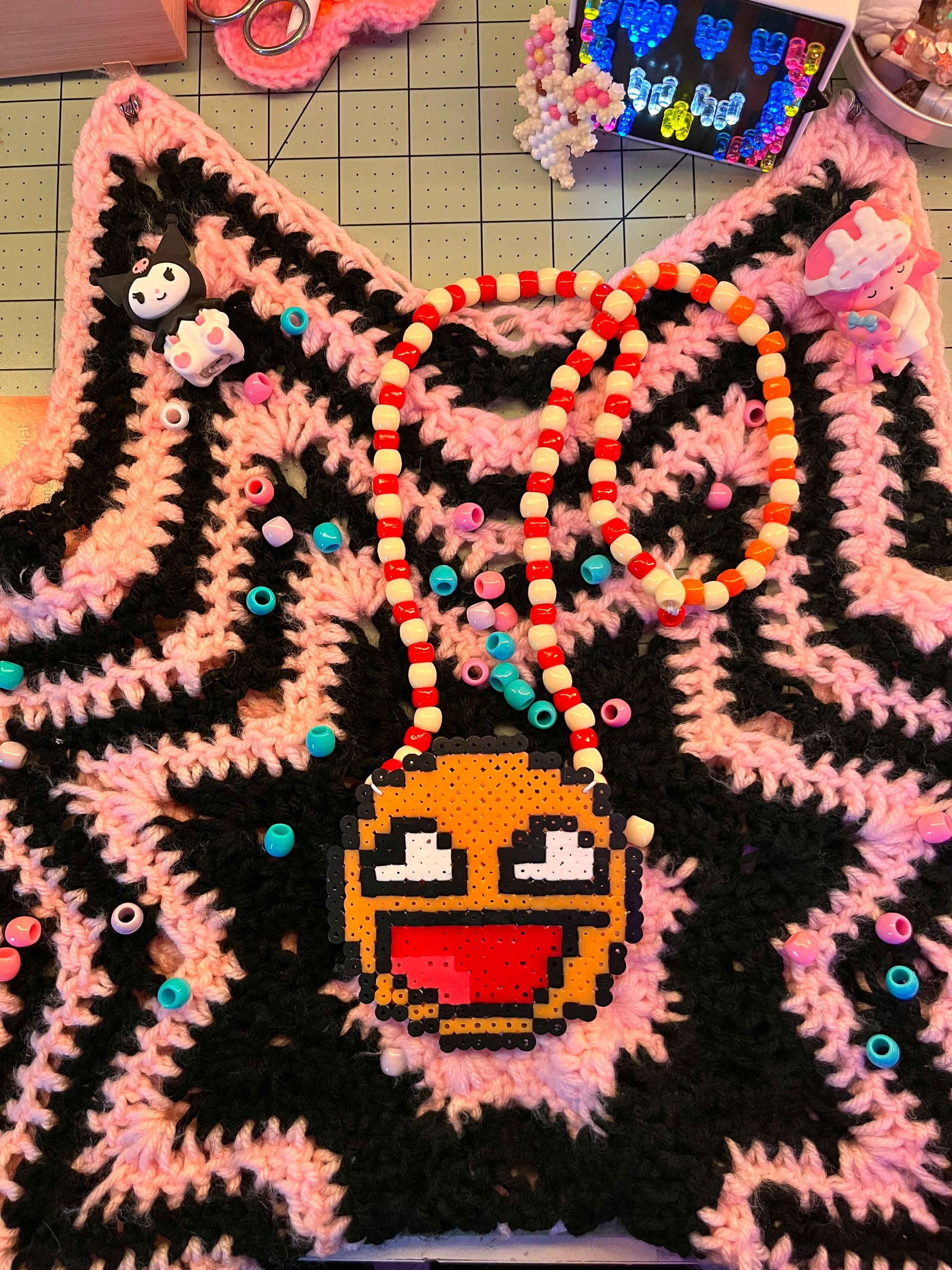 Emoji perler bead necklace for raves and festivals😄secured with elastic string
