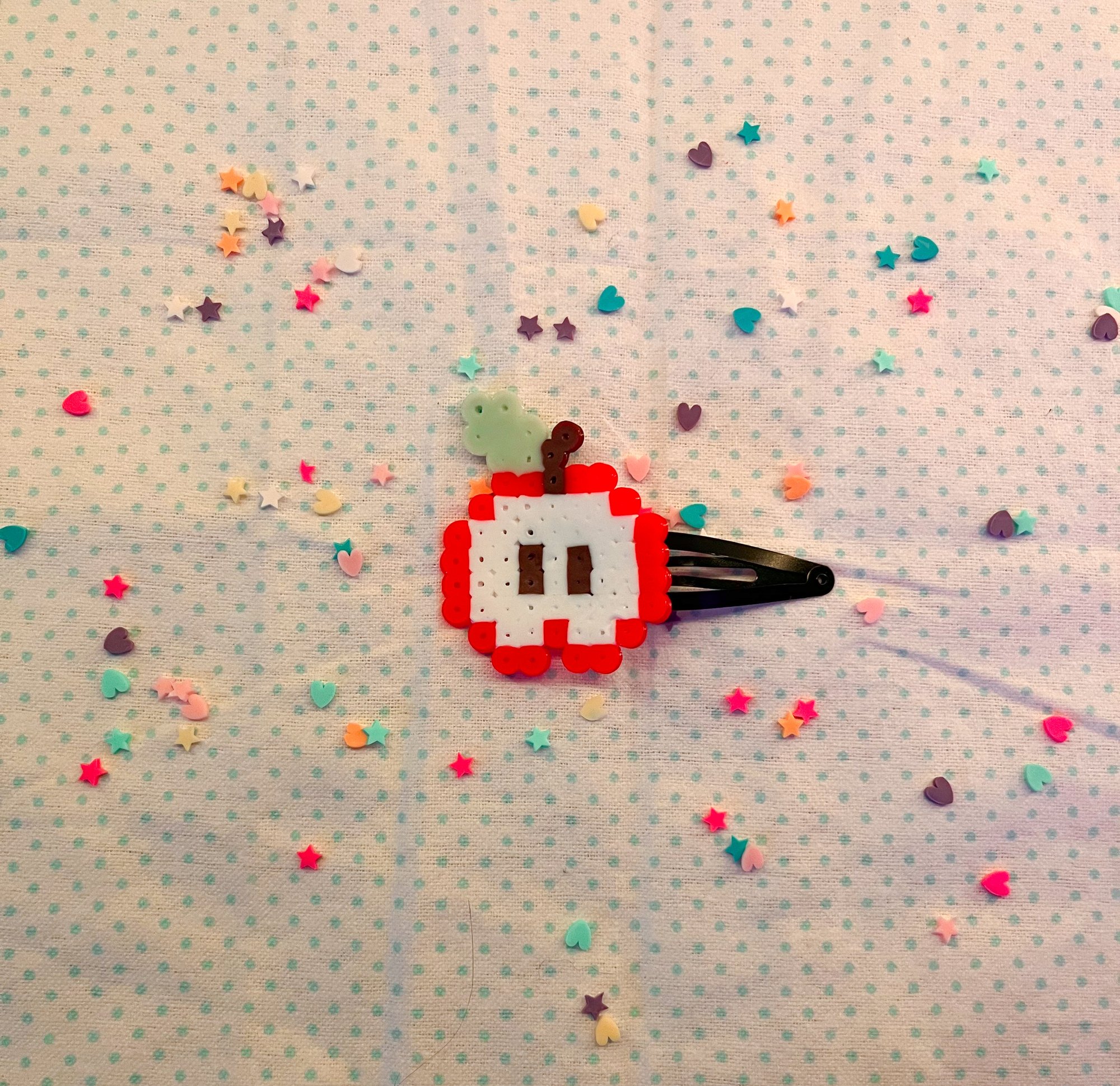 Kawaii apple perler bead hair clip