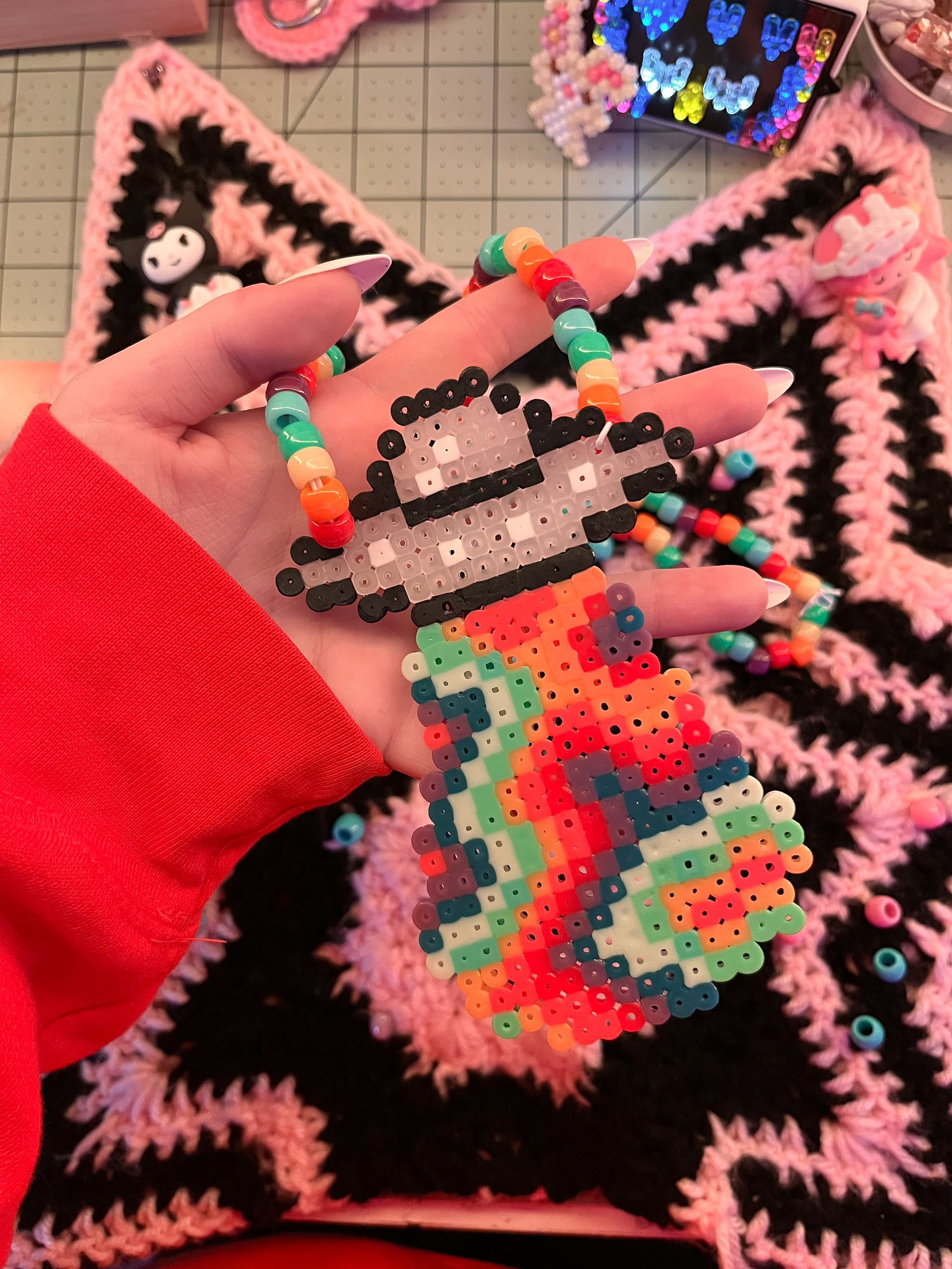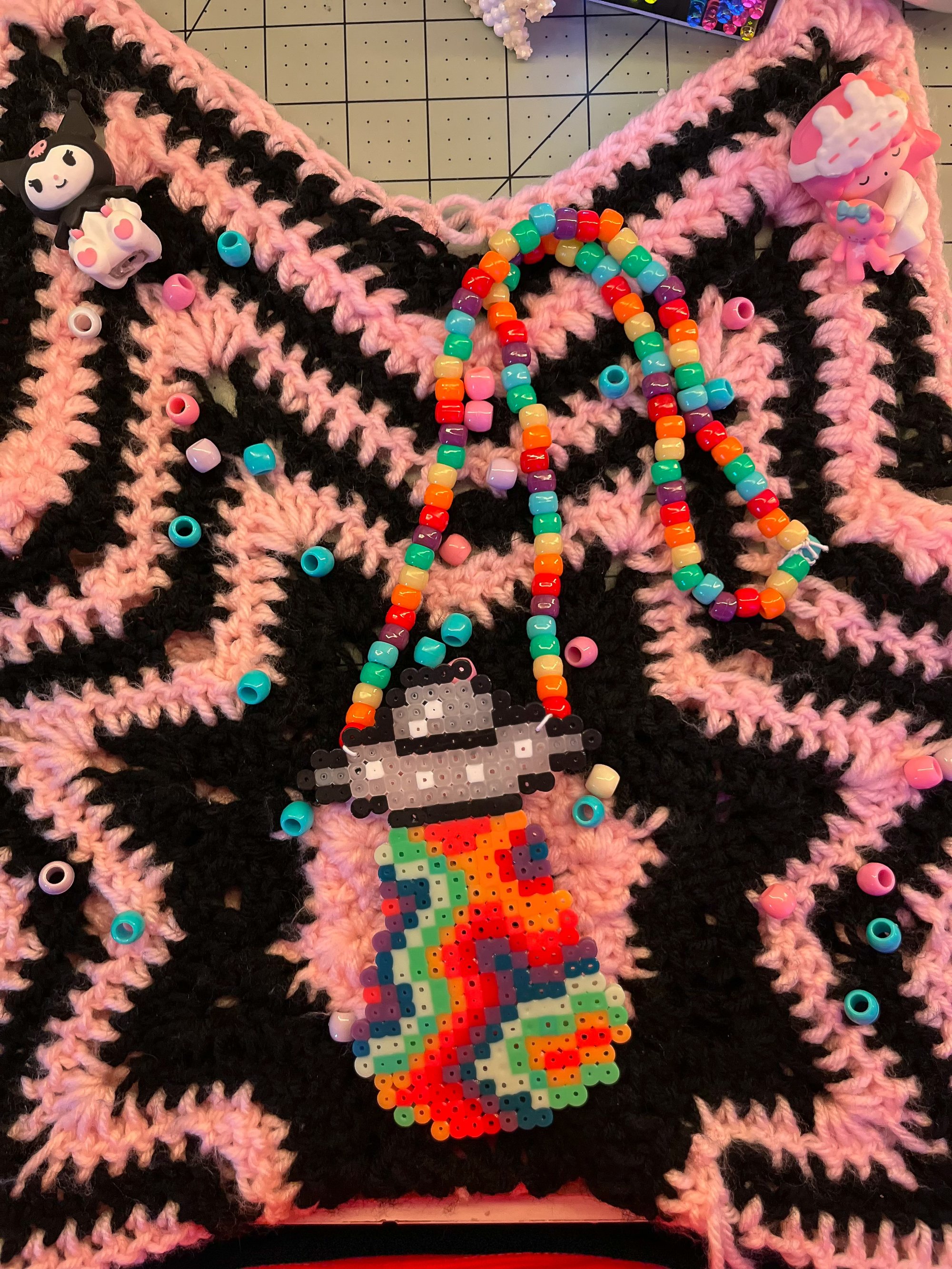 Rainbow UFO perler bead necklace